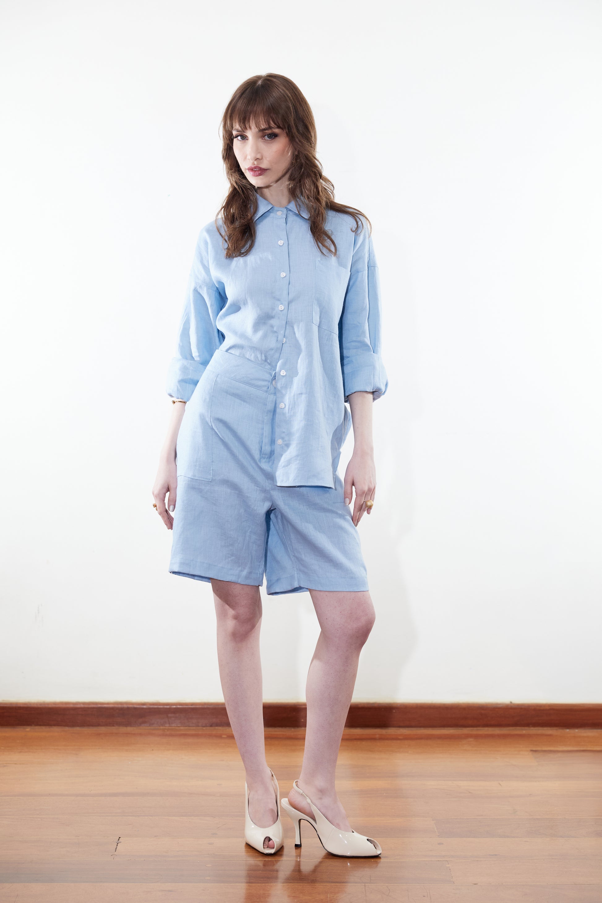 Bermuda confeccionada em 100% linho que conta com bolsos ‘tipo Carpinteiro’, ideal para compor com uma camisa durante o verão. Uma peça simples que carrega atemporalidade e sofisticação.