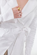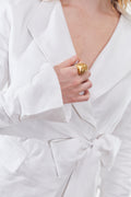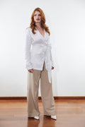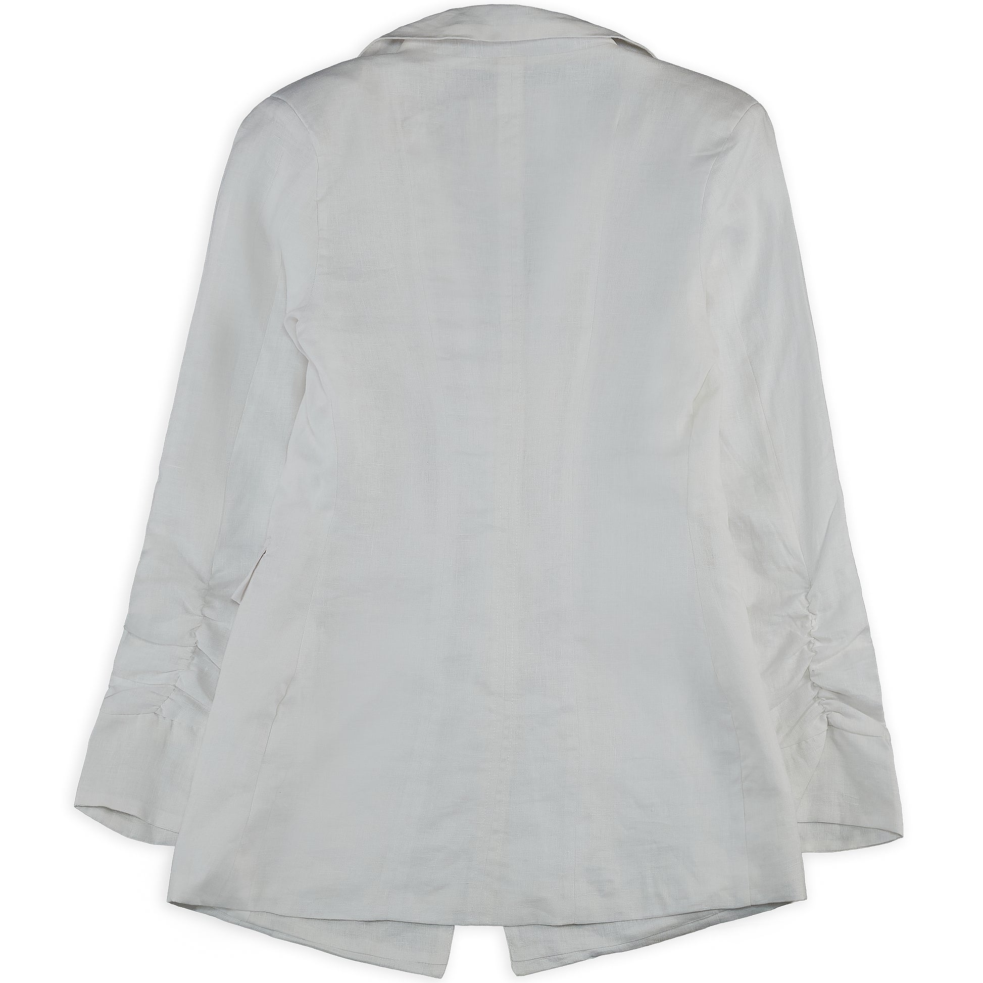 Confeccionado em 100% linho, a peça é delicada e ideal para os dias de verão, a construção conta com um punho franzido e frente em sobreposição. Além disso, o blazer possui um forro leve que garante conforto durante todo o dia.