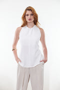 Blusa de frente única, com fechamento em botões e recorte frontal. Uma peça que combina conforto e estilo em um design elegante.